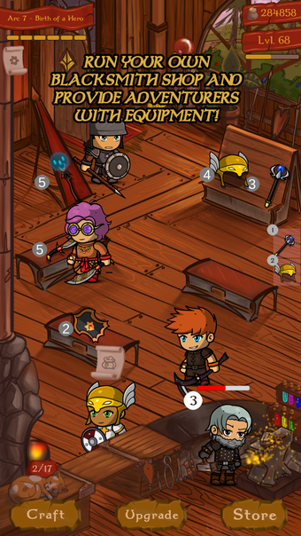Pemain akan mengikuti perjalanan para pahlawan mereka dalam menaklukkan dungeon fantasi sambil mengembangkan toko blacksmith mereka. Seiring kemajuan permainan, pengguna dapat menciptakan item yang lebih berharga dan memenuhi kebutuhan lebih banyak pahlawan. Fitur utama dari permainan ini mencakup gameplay yang sederhana namun adiktif, mode cerita yang menarik, serta kemampuan untuk dimainkan secara offline.